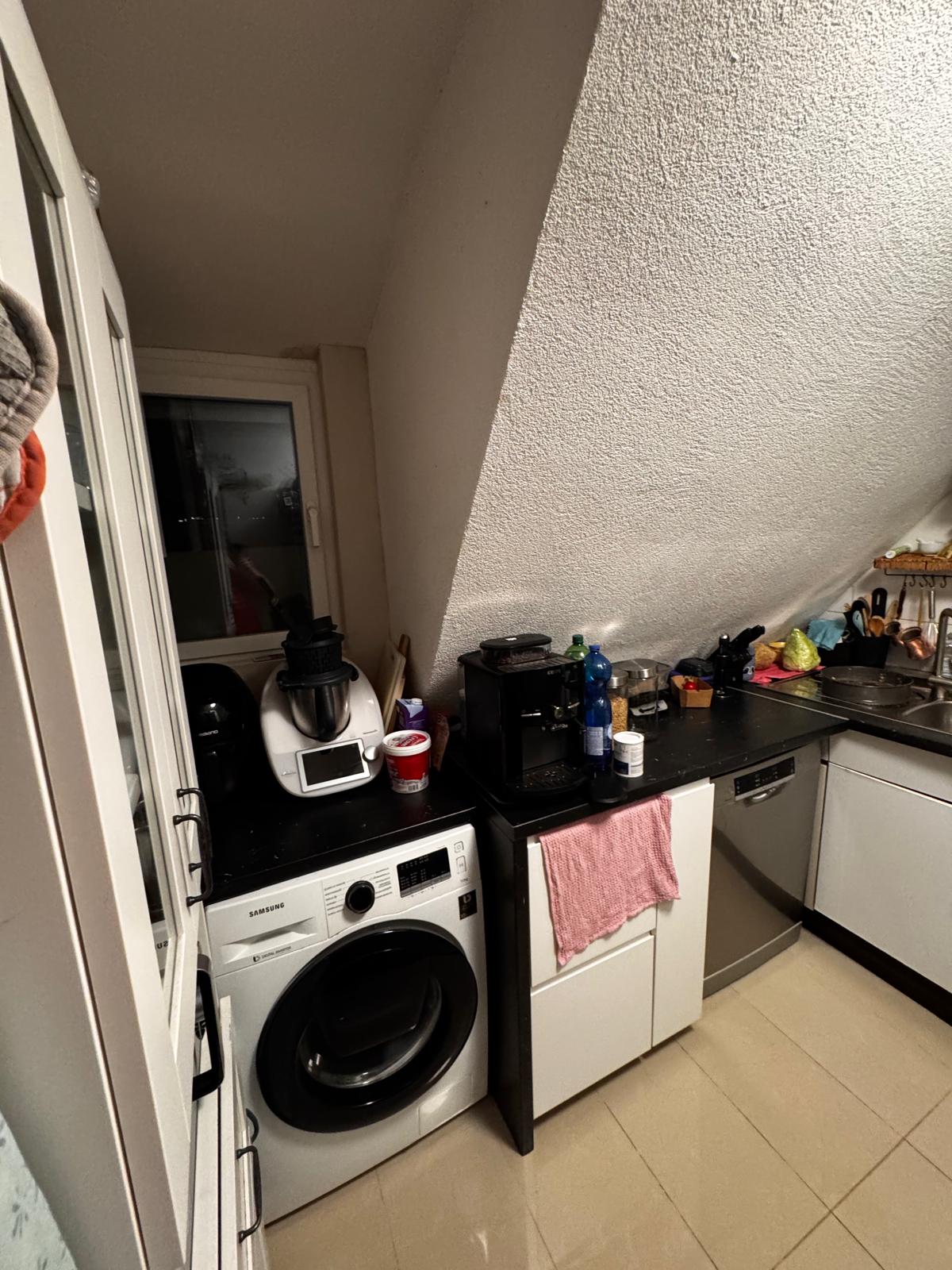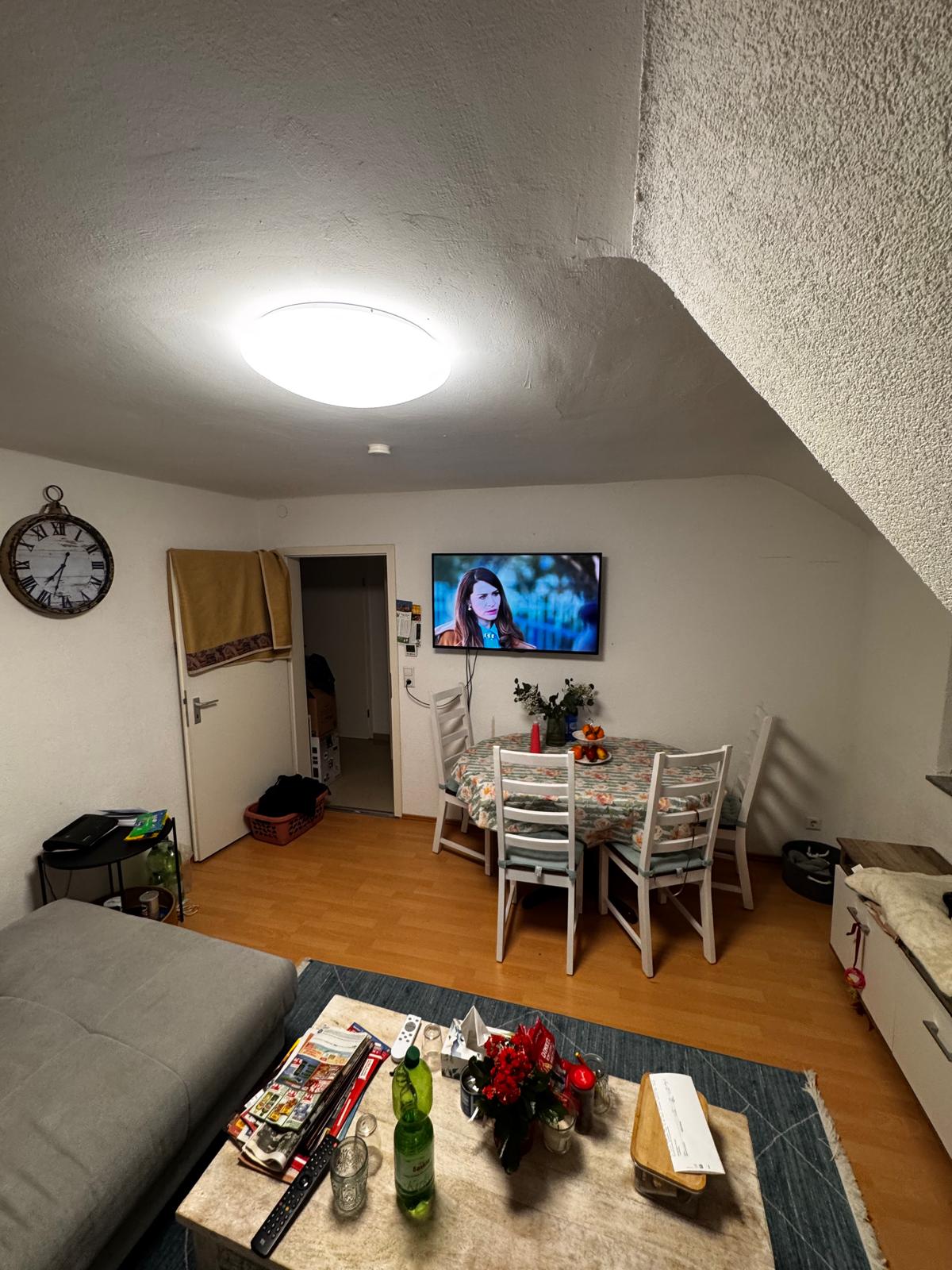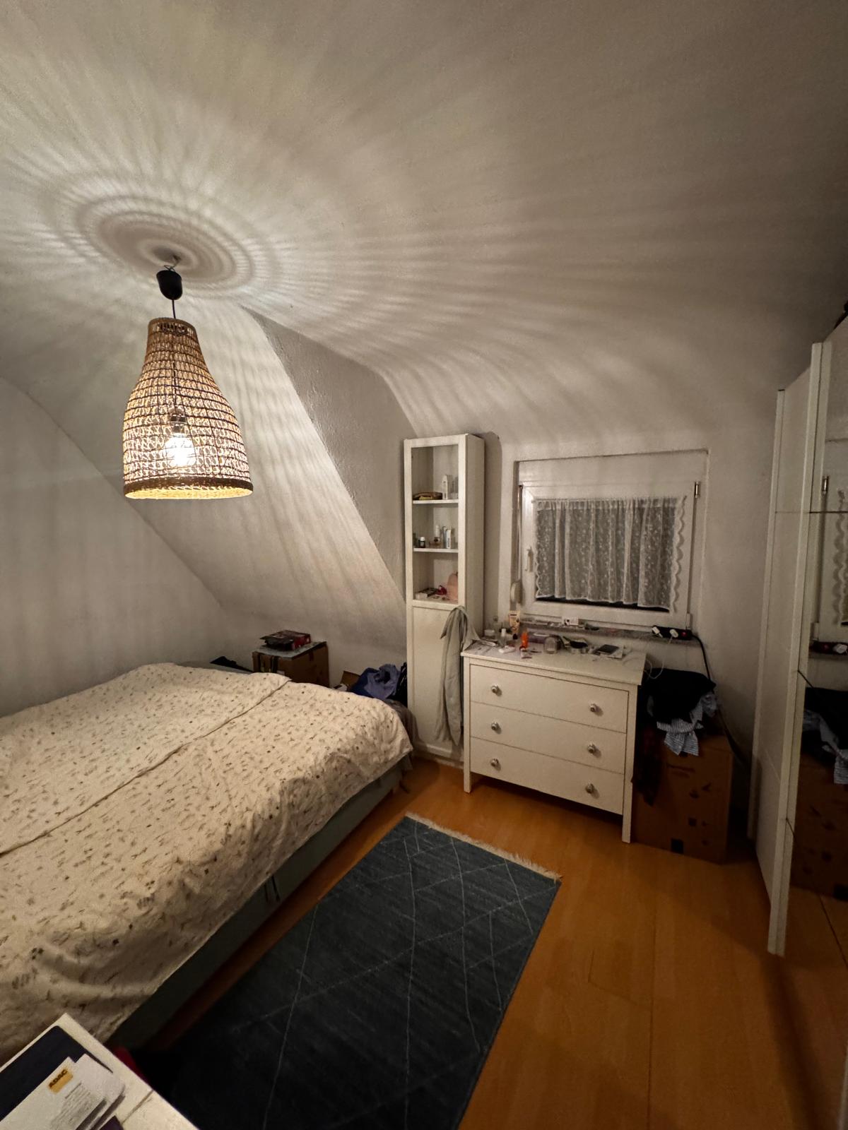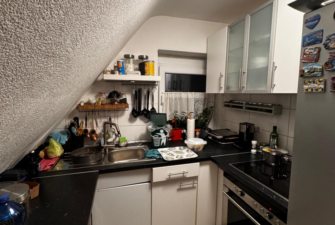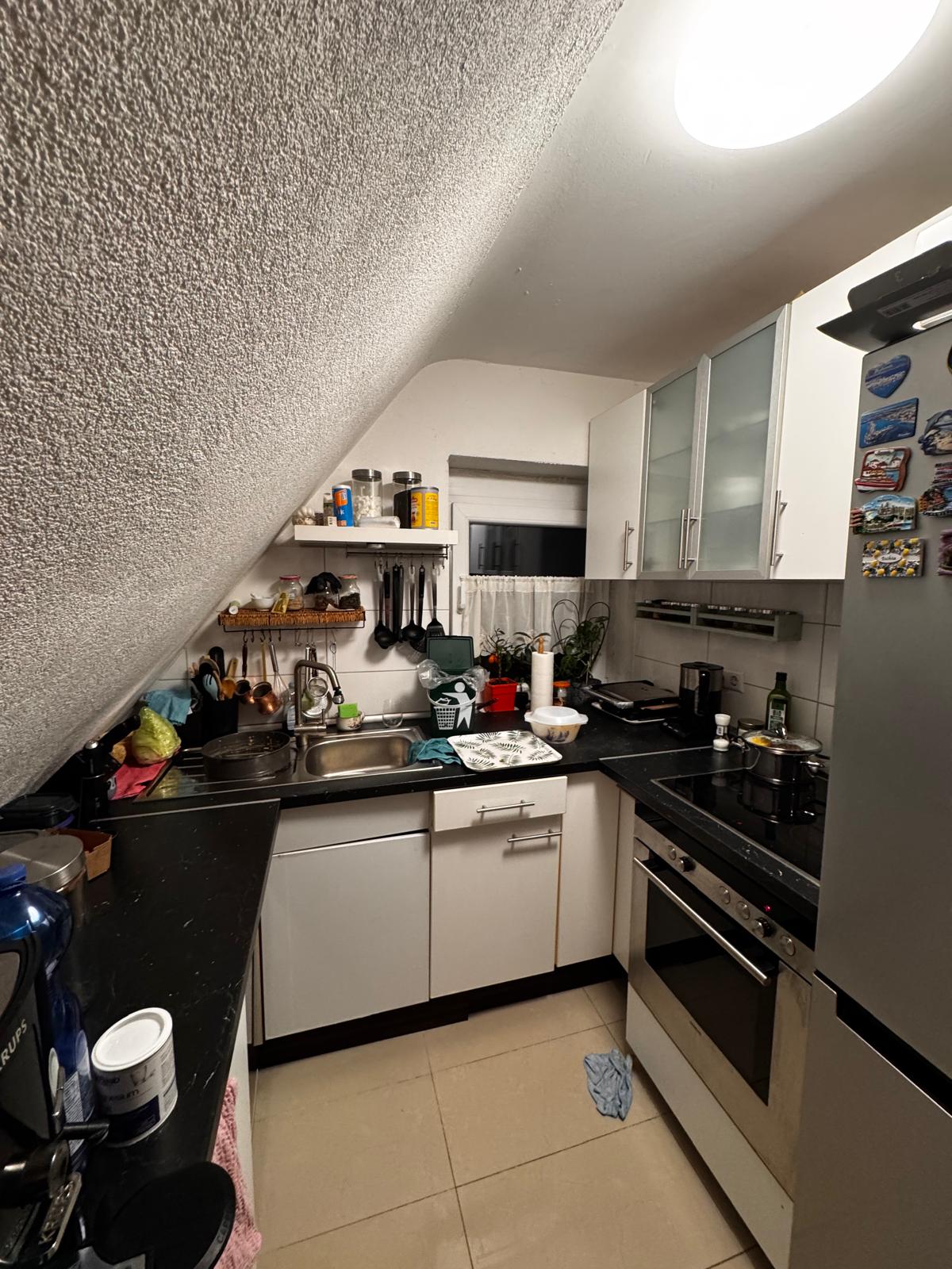 Die Wohnung besticht durch ihre helle und freundliche Atmosphäre. Die großzügige Raumaufteilung umfasst ein Wohnzimmer, zwei weitere Zimmer, eine moderne Einbauküche sowie ein Badezimmer. Der Dachgeschosscharakter mit gemütlichen Schrägen verleiht der Wohnung ein besonderes Flair.