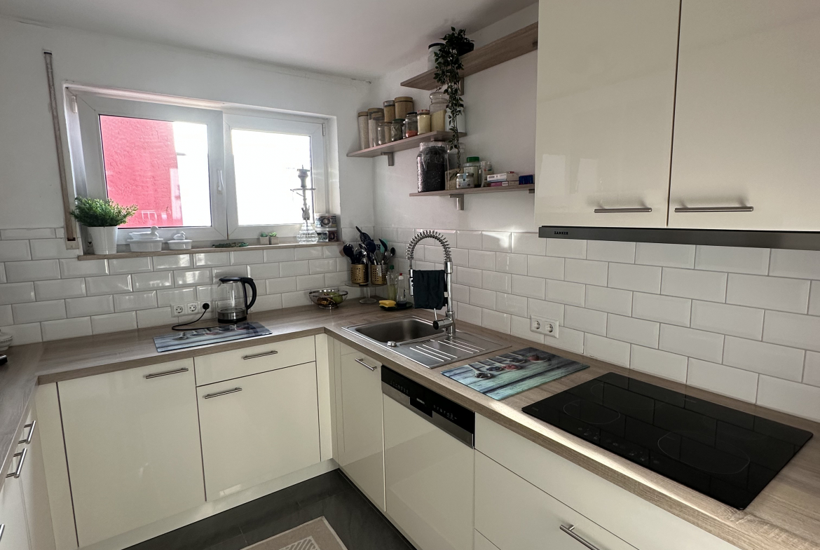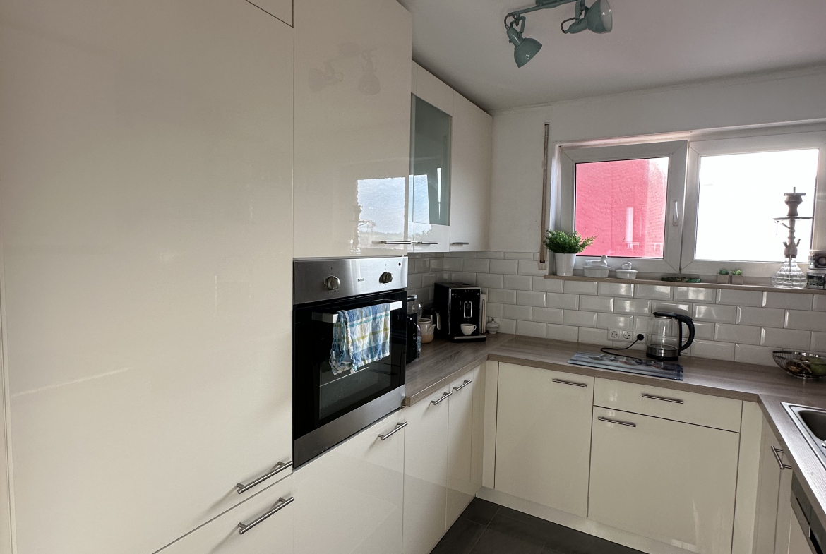 Die Wohnung liegt in einer ruhigen und familienfreundlichen Gegend. Direkt vor der Haustür befindet sich ein Kindergarten, und auch Bäckereien sowie weitere Einkaufsmöglichkeiten sind bequem zu Fuß erreichbar. Mit dem Auto erreichen Sie den Kaufland in nur drei Minuten. So genießen Sie eine gute Infrastruktur und zugleich eine angenehme Wohnumgebung.